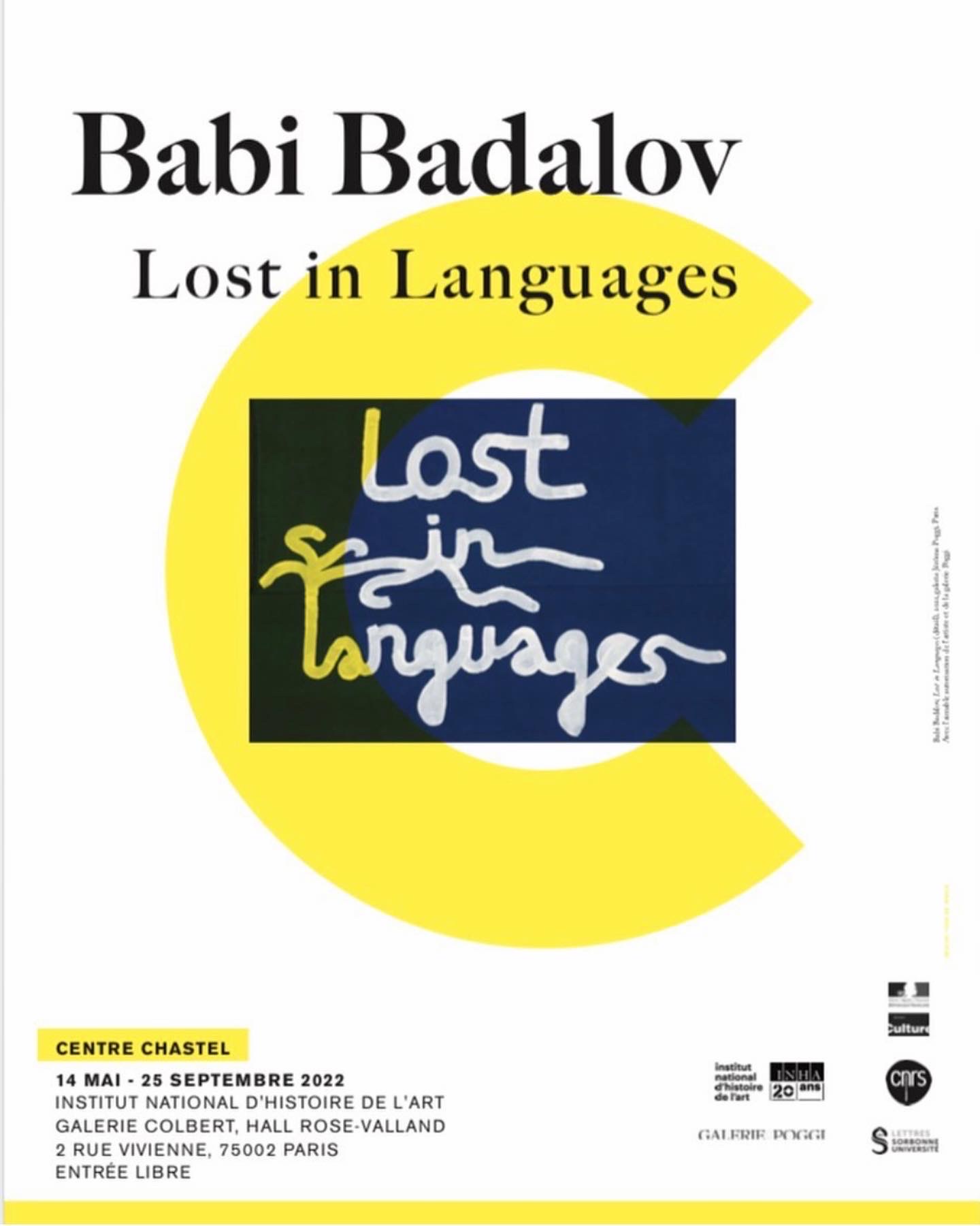 Lost in Languages, Insitut National Historie Art, Paris Date: May 16, 2022Author: Babi Badalov Post navigation ← “And if I devoted my life to one of its feathers”, Kunsthalle, Wien DARKtoevski, A Certain Lack Of Coherence, Porto → http://www.centrechastel.paris-sorbonne.fr/actualites/babi-badalov Share this: Click to share on Facebook (Opens in new window) Facebook Like Loading...