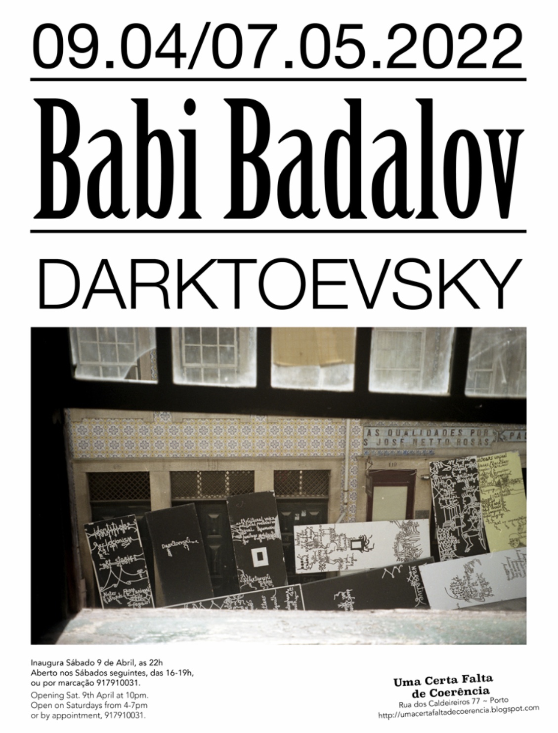 DARKtoevski, A Certain Lack Of Coherence, Porto Date: May 30, 2022Author: Babi Badalov Post navigation ← Lost in Languages, Insitut National Historie Art, Paris Life, Death, Love and Justice, Yapi Kredi, Cultur Center, → https://acloc2022-babibadalov-darktoevski.blogspot.com/ Share this: Click to share on Facebook (Opens in new window) Facebook Like Loading...
